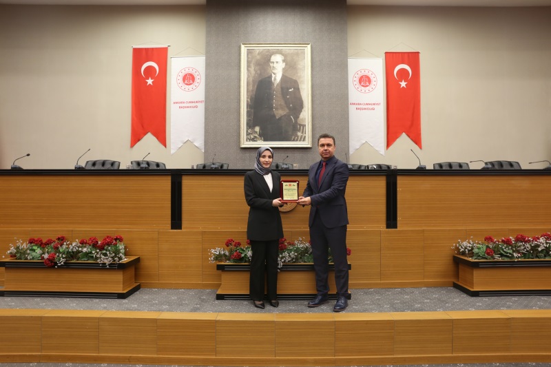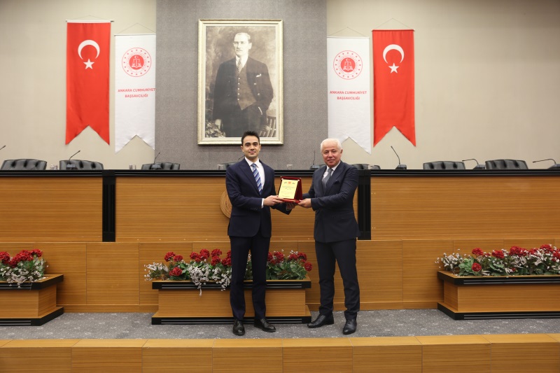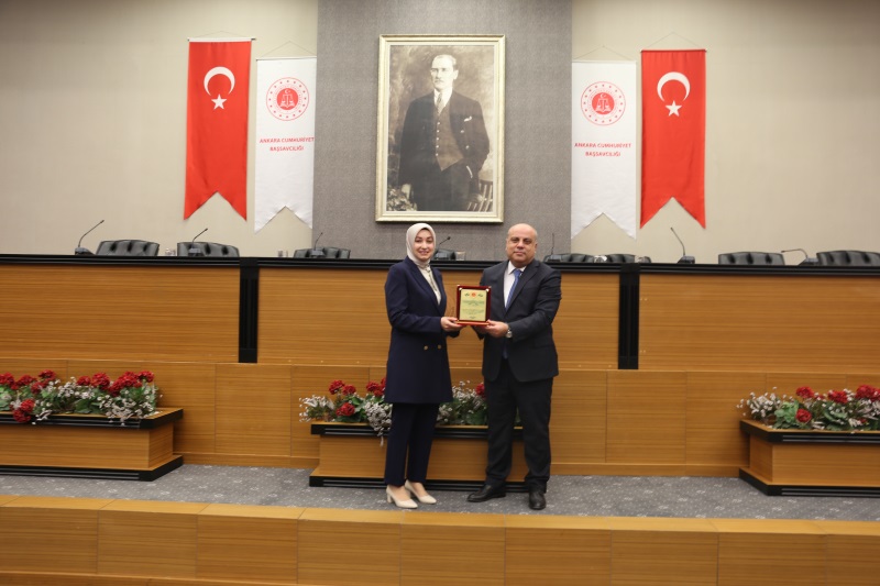 Cumhuriyet Başsavcısı Sayın Gökhan KARAKÖSE, Adalet Komisyonu Başkanı Sayın Murat İLHAN, Adalet Komisyonu Üyesi Sayın Ayhan BİLTEKİN, Cumhuriyet Başsavcı Vekili Sayın Murat ÖZCAN ve Cumhuriyet Başsavcı Vekili Sayın Melih ALADAĞ’ın katılımı ile 06.11.2025 tarihinde Ankara Adlî Yargı 28. Dönem Hâkim ve Savcı Adaylarına kura töreni öncesi veda programı düzenlenmiş ve 28. Dönem Adli Yargı dönem birincisi Savcı Adayı Yasemin CANKURTARAN, dönem ikincisi Hakim Adayı Zehra YETİMLER ve dönem üçüncüsü Savcı Adayı Melih Kutay BAŞAY’a plaket takdimi gerçekleştirilmiştir.