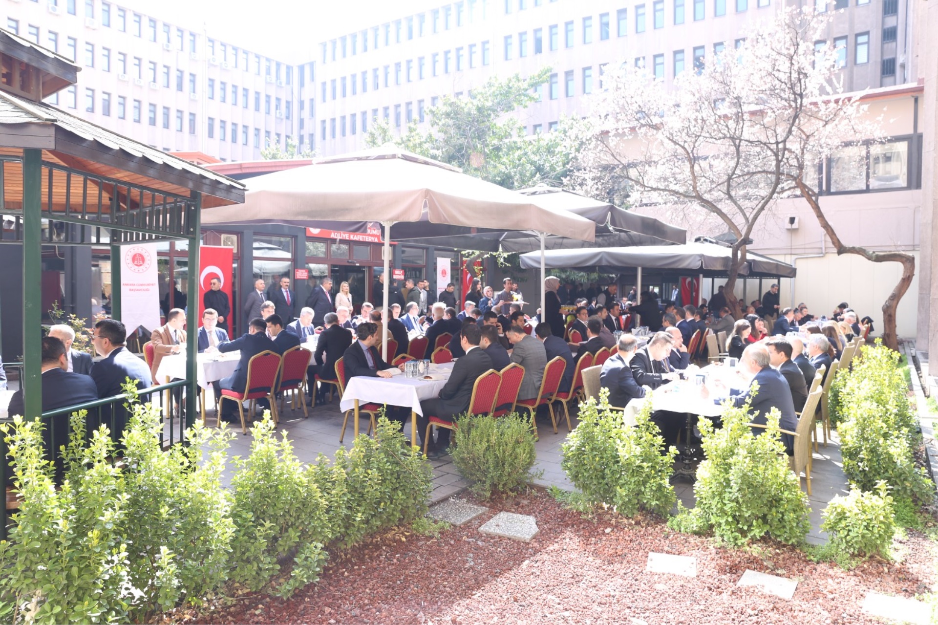 Ramazan Bayramı sonrası adliyemizde düzenlenen bayramlaşma törenine; Ankara Cumhuriyet Başsavcımız Sayın Gökhan KARAKÖSE, Adalet Komisyonu Başkanımız Sayın Murat İLHAN, Adalet Komisyonu Üyemiz Sayın Ayhan BİLTEKİN, Mahkeme Başkanlarımız, Cumhuriyet Başsavcı Vekillerimiz, Cumhuriyet savcılarımız, hâkimlerimiz, adliye çalışanlarımız ve adliyemizde görev yapan basın mensupları katıldı.